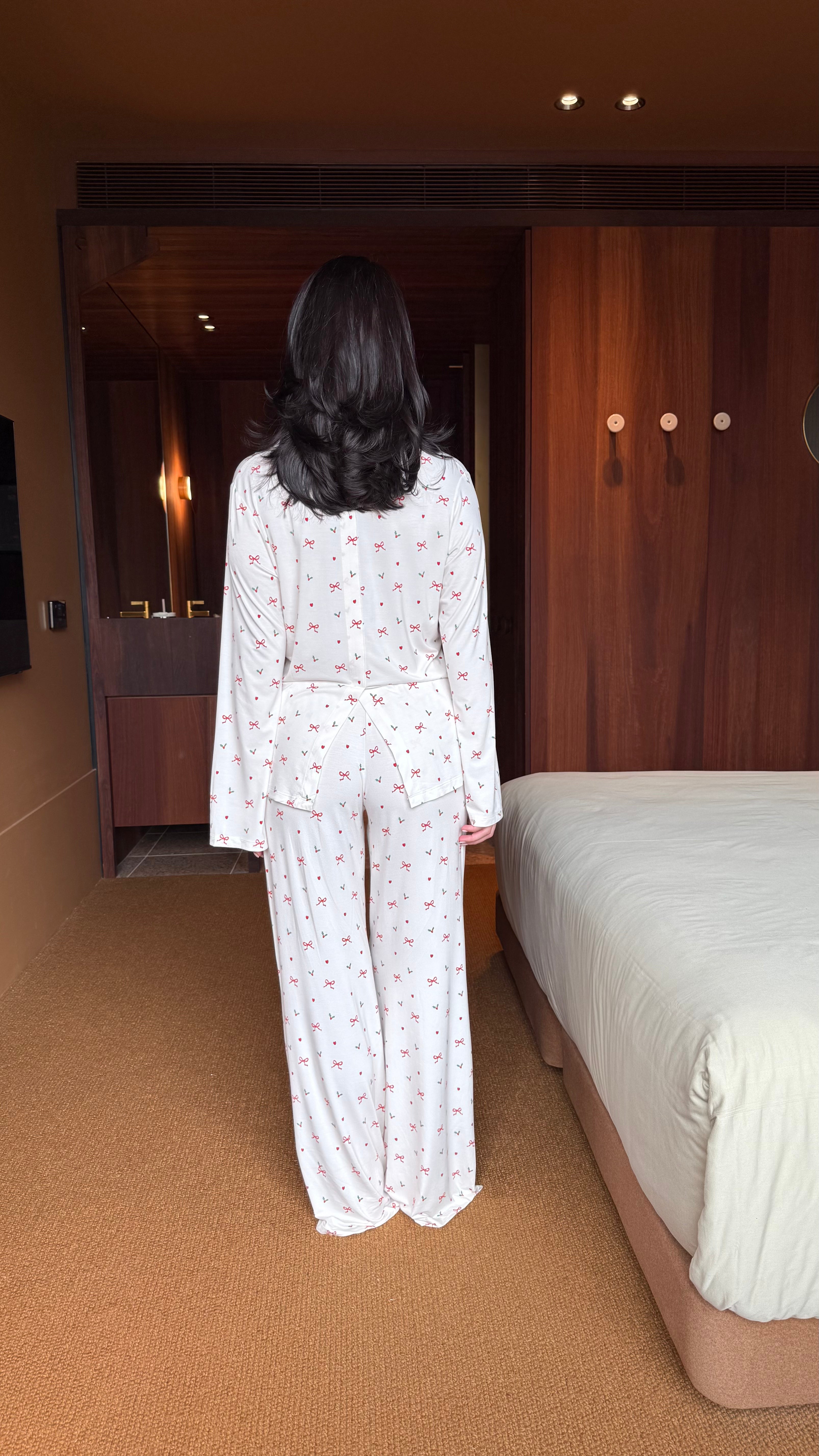 Our first-ever festive Pj that’s sure to take you back to the cozy nostalgia of childhood pjs with a creamy base and pops of the classic red and green festive colours. Designed with a breezy fit and the softest fabric, they're the perfect blend of style and comfort, designed to elevate your relaxation moments. Pair it with our matching Holly Pj Top for the full nostalgic look and feel.