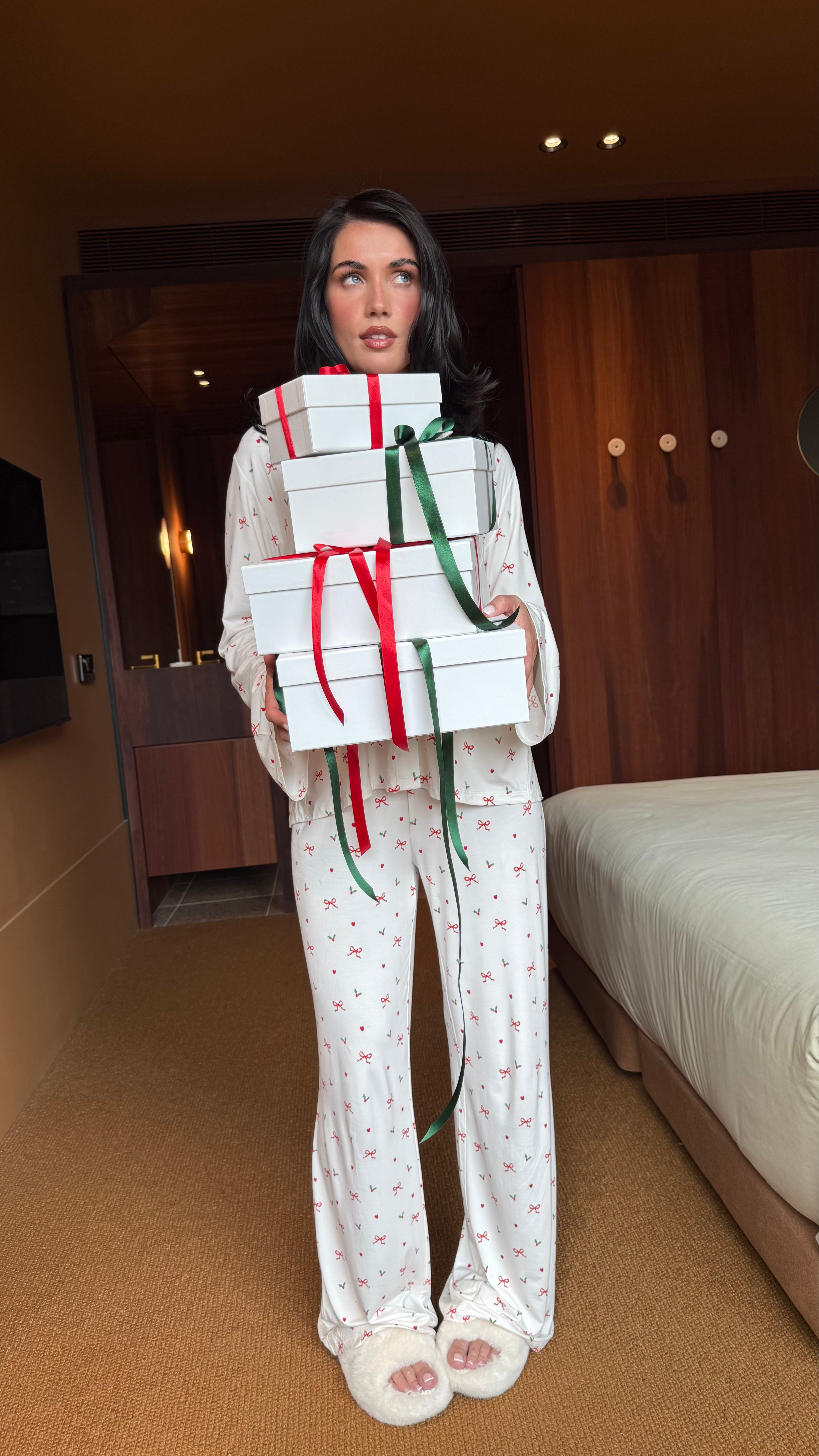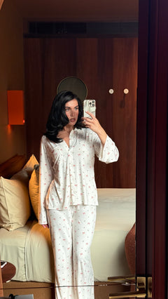 Our first-ever festive Pj that’s sure to take you back to the cozy nostalgia of childhood pjs with a creamy base and pops of the classic red and green festive colours. Designed with a breezy fit and the softest fabric, they're the perfect blend of style and comfort, designed to elevate your relaxation moments. Pair it with our matching Holly Pj Top for the full nostalgic look and feel.